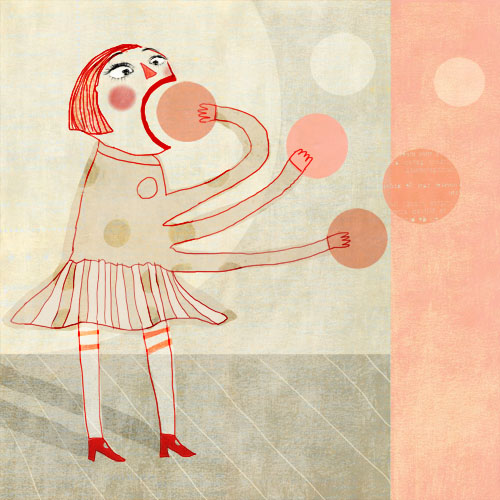 Meisje Gek Girl Collage Verward Crazy Circus Jongleur Juggler Red-cheeks-factory Giclée-art-print Digital-painting Puzzled Geniaal
