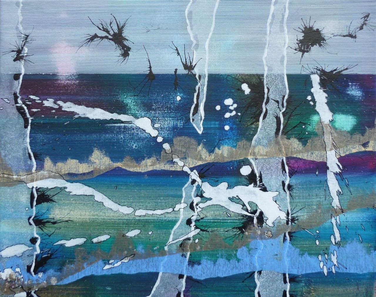Abstract schilderij uitgevoerd in Olieverf en Inkt op Linnen