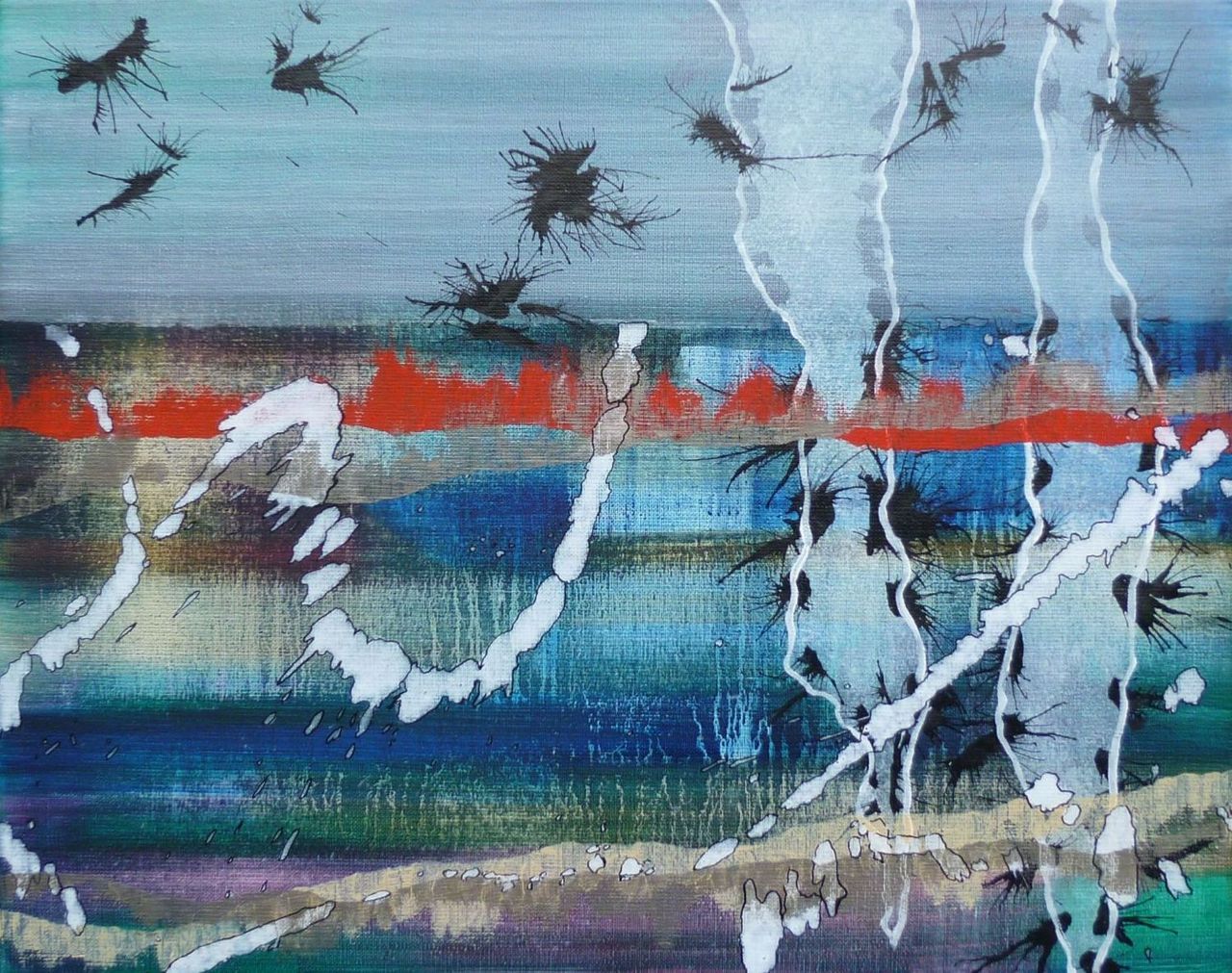 Abstract schilderij uitgevoerd in Olieverf en Inkt op Linnen.
