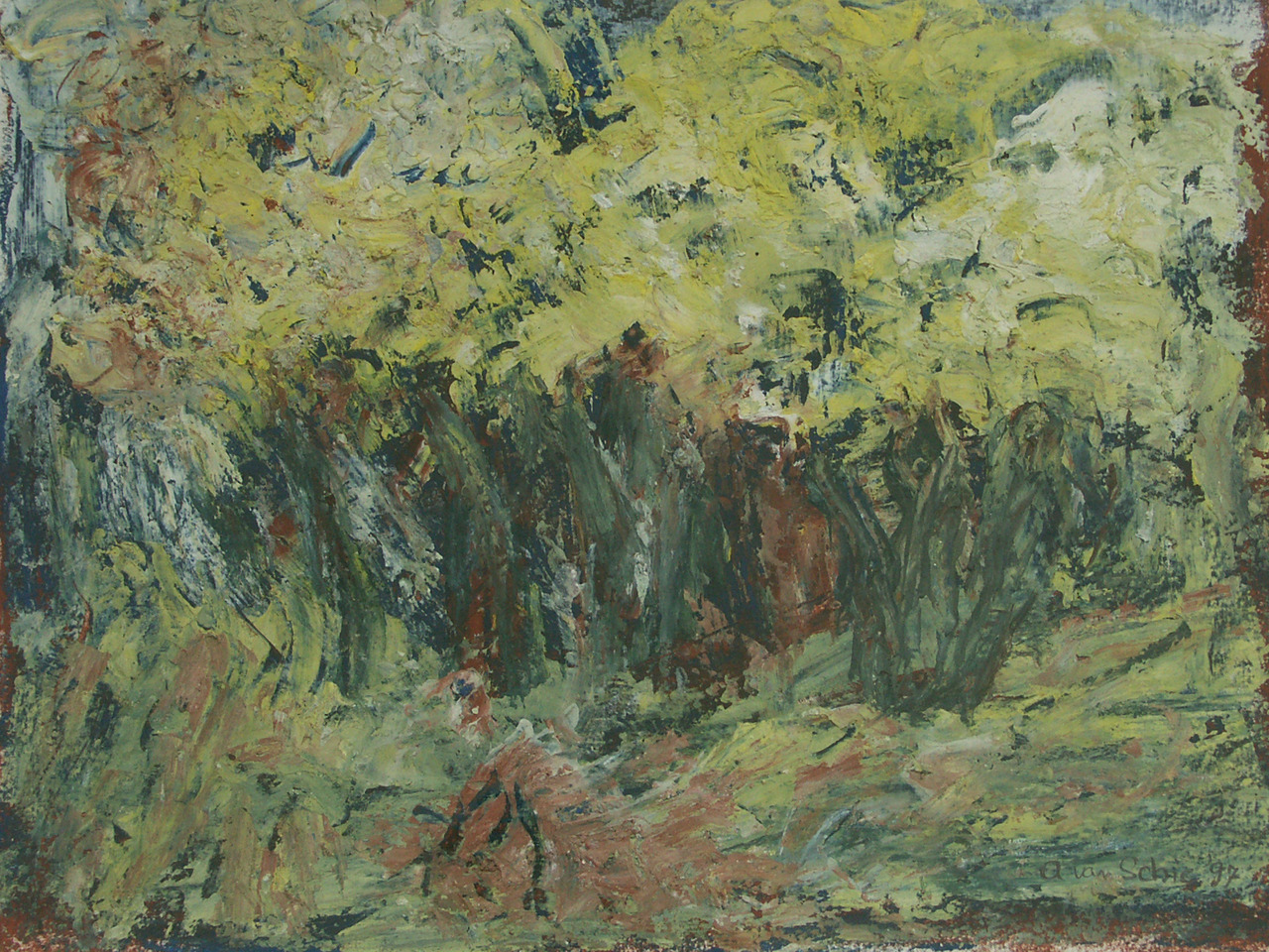 Schilderij Geel Groen Natuur Bomen Tempera