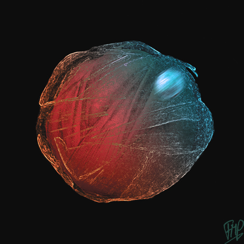 Kleurrijke digitale kunst. Abstracte voorstellingen worden op papier geboren en met de computer afgemaakt.