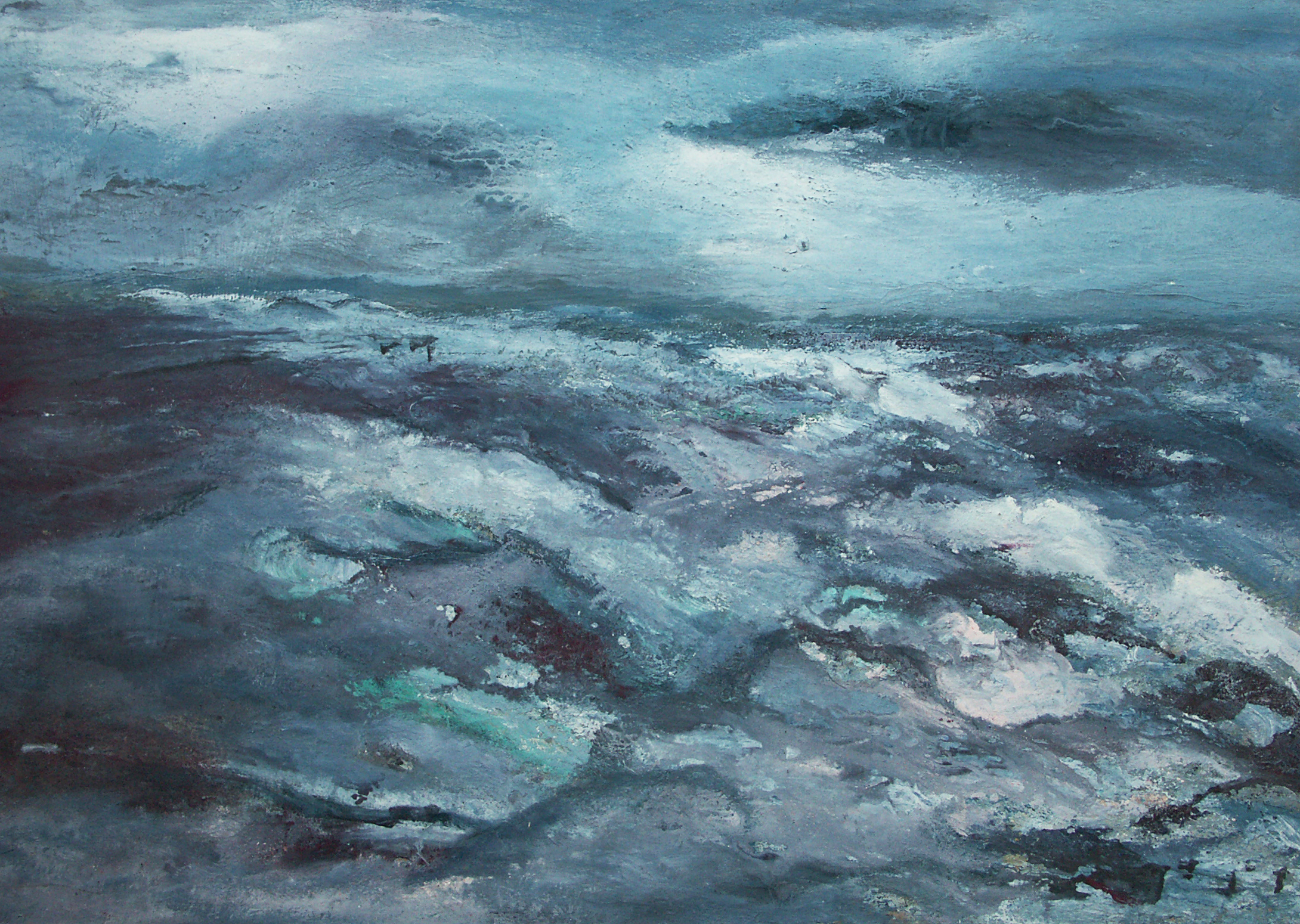 Zee Zeegezicht Schilderij Tempera Blauw Storm
