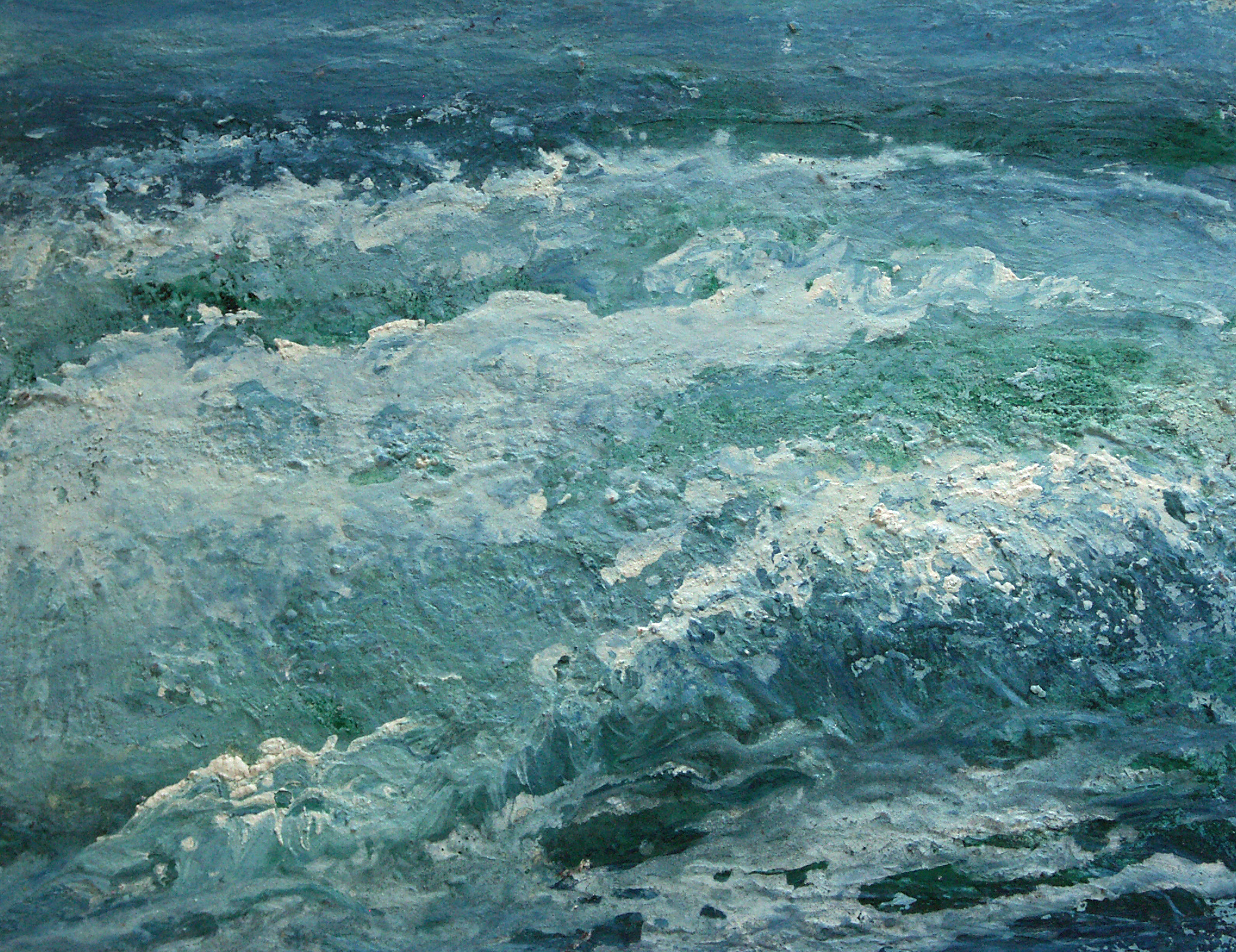 Zee Schilderij Zeegezicht Woeste Kolkend Water Tempera Blauwgroen
