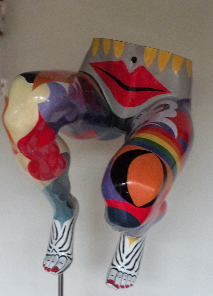 Gehurkte benen "in afwachting " kleurig beschilderd.