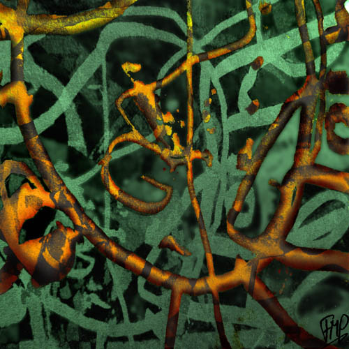 Kleurrijke digitale kunst. Abstracte voorstellingen worden op papier geboren en met de computer afgemaakt.