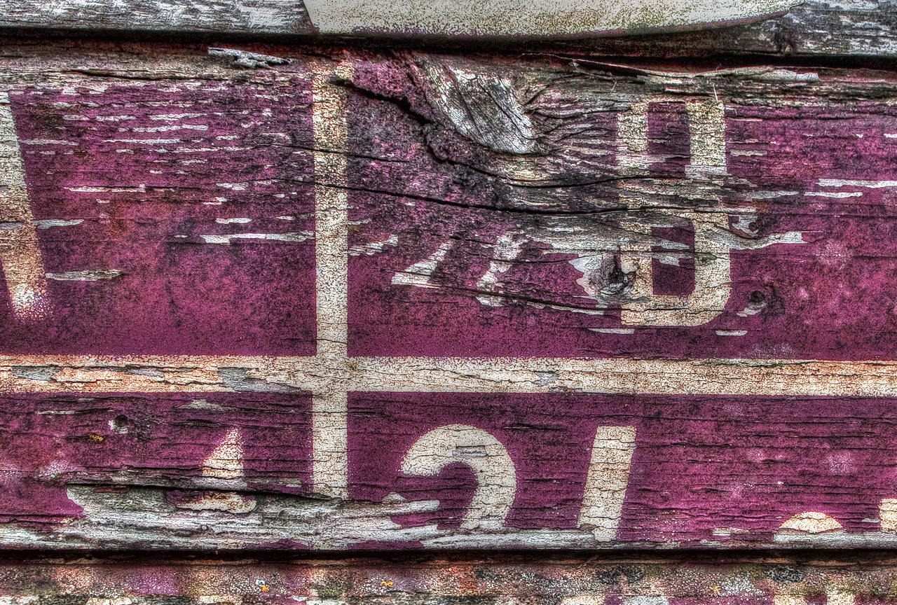 Symbolen en teksten op goederenwagons welke door de tijd zijn aangetast. En langzaam opgaan in de ondergrond