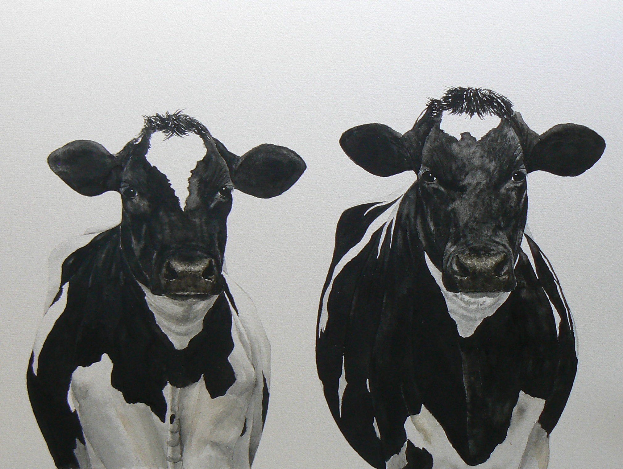 Twee mooie koeien.Het werk wordt geleverd in passepartout en aluminium Barthlijst (60x70cm)