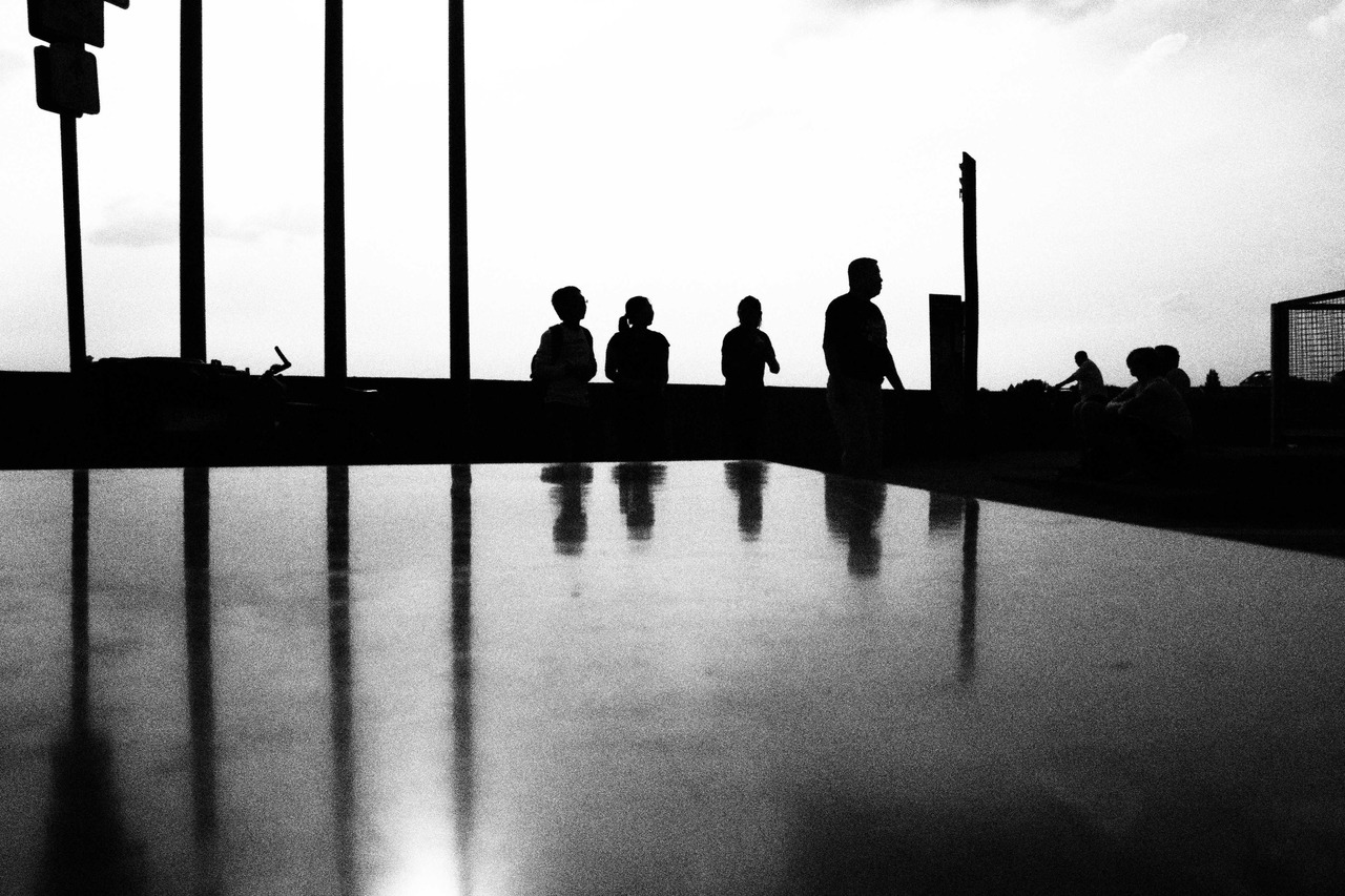 Mensen in tegenlicht in Dusseldorf