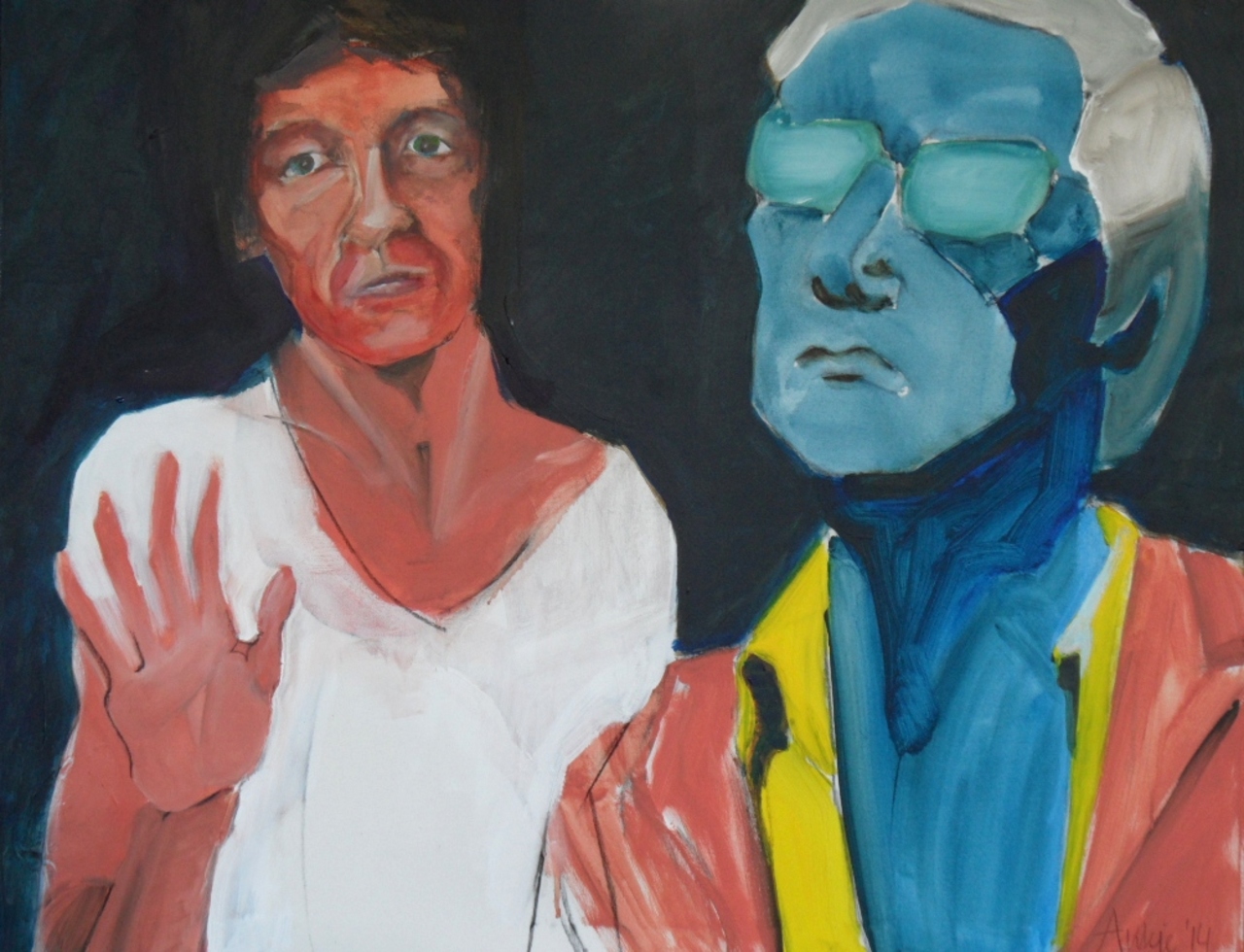 Wit Figuratief Mensen Oranje Geel Blauw Acryl Abstraherend Donker Houtskool Leegte Contrast