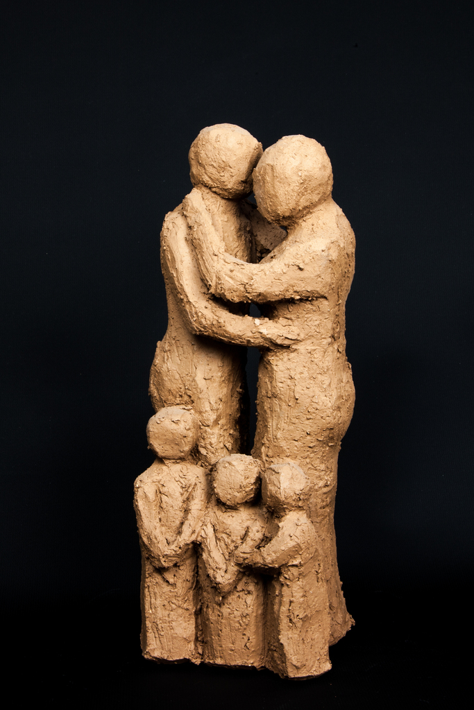 GEZIN vader, moeder en drie kinderen Voor altijd met elkaar verbonden gemaakt van bruine grove chamotte klei afgebakken op 1000 graden geschikt voor binnnen of buiten (in de winter afdekken of naar binnen) wordt geleverd zonder sokkeltje (sokkel is wel bij te bestellen) Heeft u vragen, vul het contact formulier in of mail me gewoon even met uw vraag.