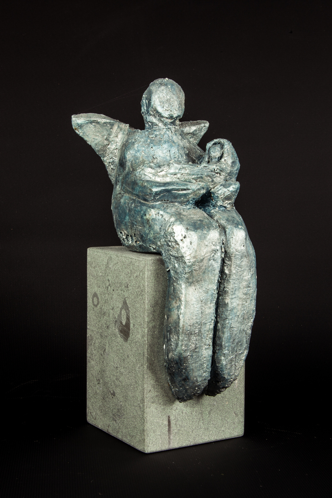 ENGEL Deze engel begeleid de persoon die hem krijgt een heel leven lang...... Je kunt deze Engel geven bij een geboorte, maar ook aan iemand die je heel dierbaar is en die je een heel speciaal cadeau wilt geven. Ook een andere gedachte kan erachter zitten, het kan gebruikt worden voor op een graf...., het is net wat iemand erbij voelt. Het feit blijft dat dit beeldje een speciale betekenis heeft. Engelen maken ons vertrouwd met het ware, goede en schone. Leer ze kennen: de engel van de liefde, de inspiratie, de overgave, de mildheid, de hoop, de bescherming, het licht. Het beeldje zit op een mooie sokkel welke afkomstig is uit de Dolomieten Beeldje is gemaakt van grove chamotte klei, en na enkele weken droogtijd gebakken op 1000 graden. Nu is het geschikt voor binnen maar ook voor buiten. Heeft u vragen, stel ze mij gerust!