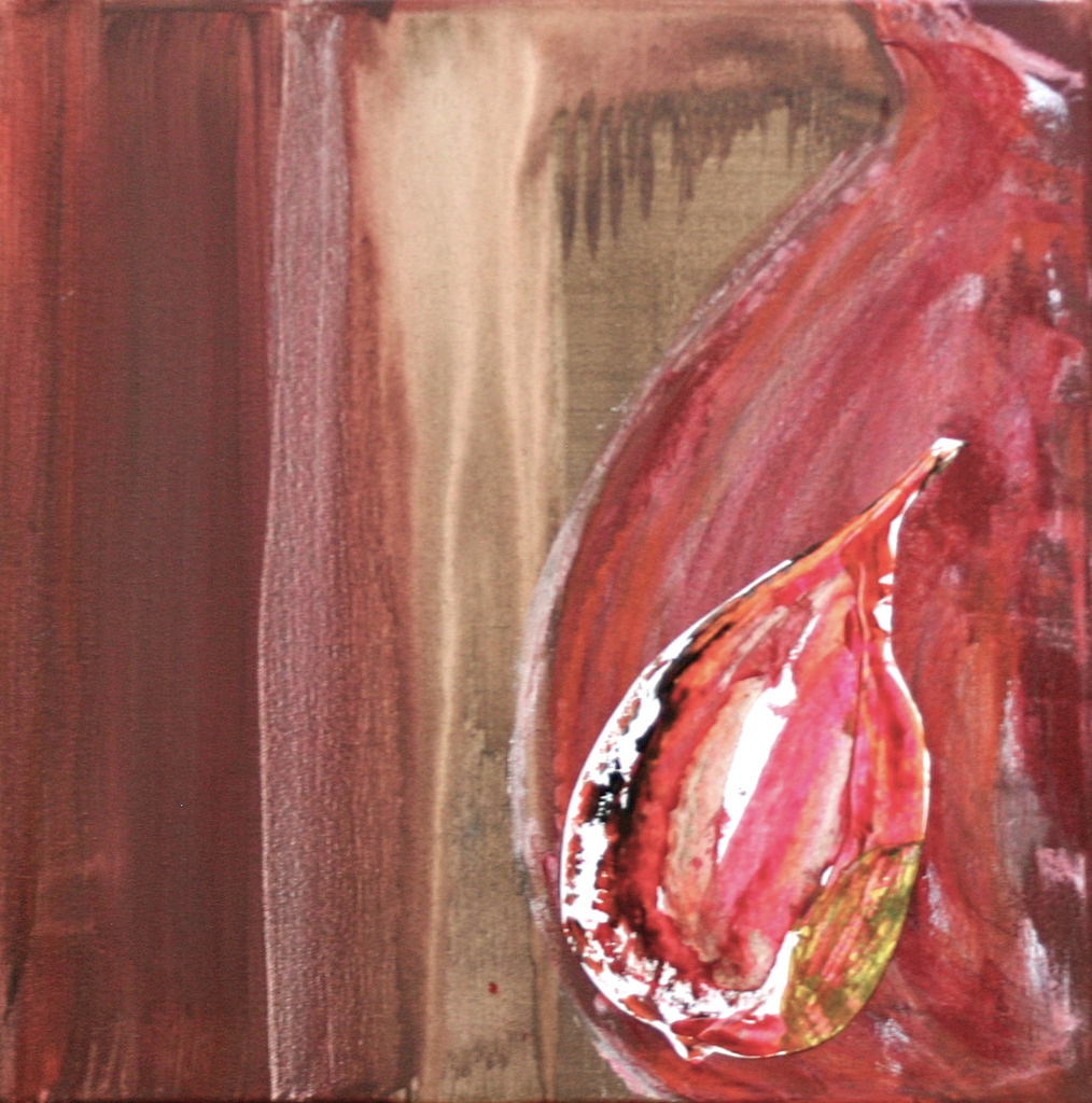 Schilderij Rood Acryl Bruin Papier Doek Peer Ui