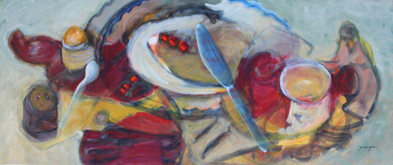 Schilderij Art Kunst Painting Ontbijt Table Ontbijttafel "breakfast Table"