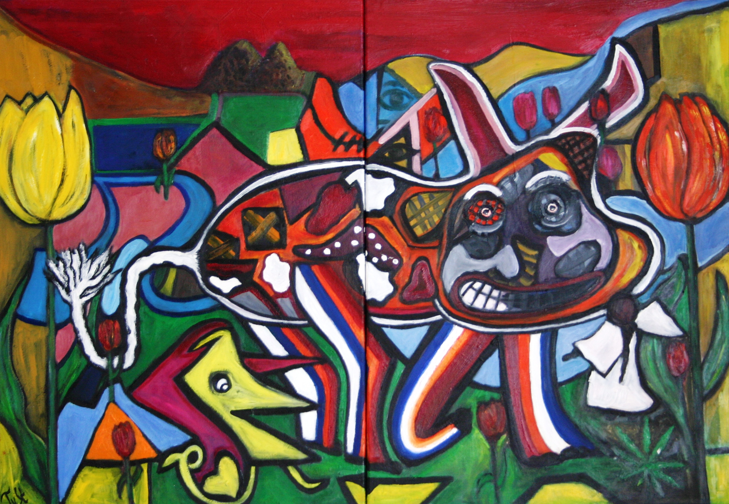 Bloemen Twee Dieren Gek Olieverf Holland Zomer Raar Voorjaar Luik Beterschap
