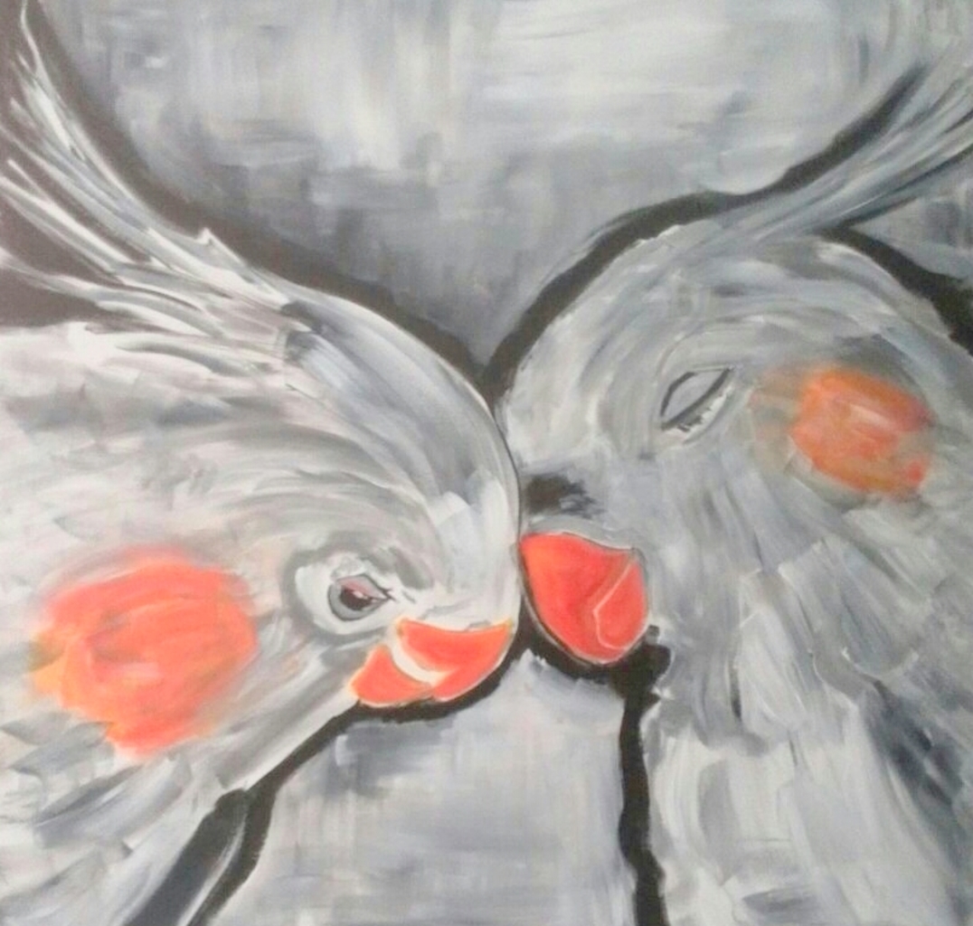 Wit Modern Zwart Vogel Liefde Kunst Samen Vrijheid Schattig Hip Parkiet