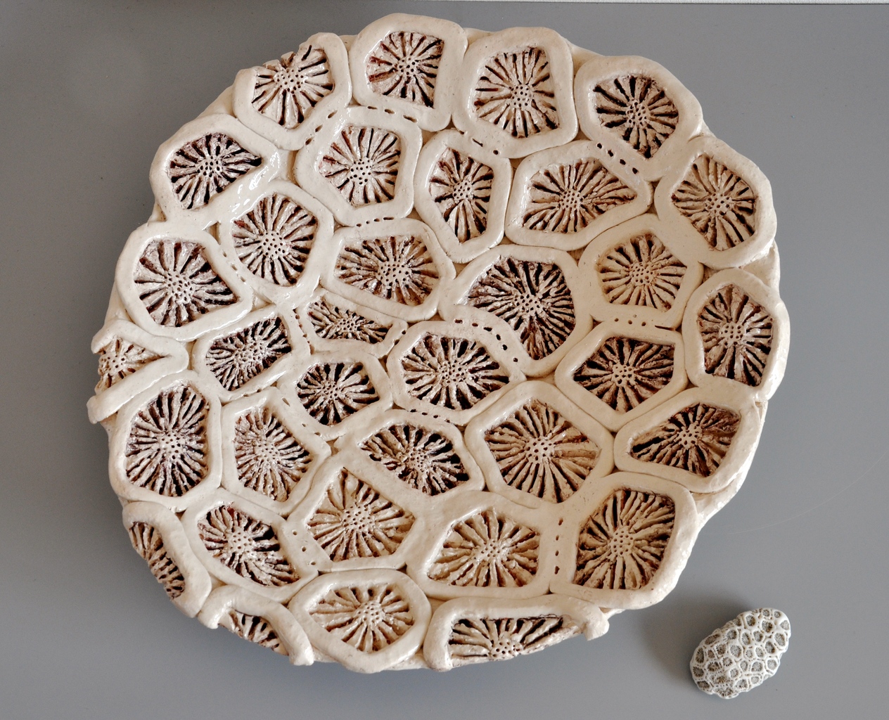 Schaal met repeterend patroon. De inspiratie voor het patroon komt van koraal uit Indonesie, wat een prachtig patroon heeft