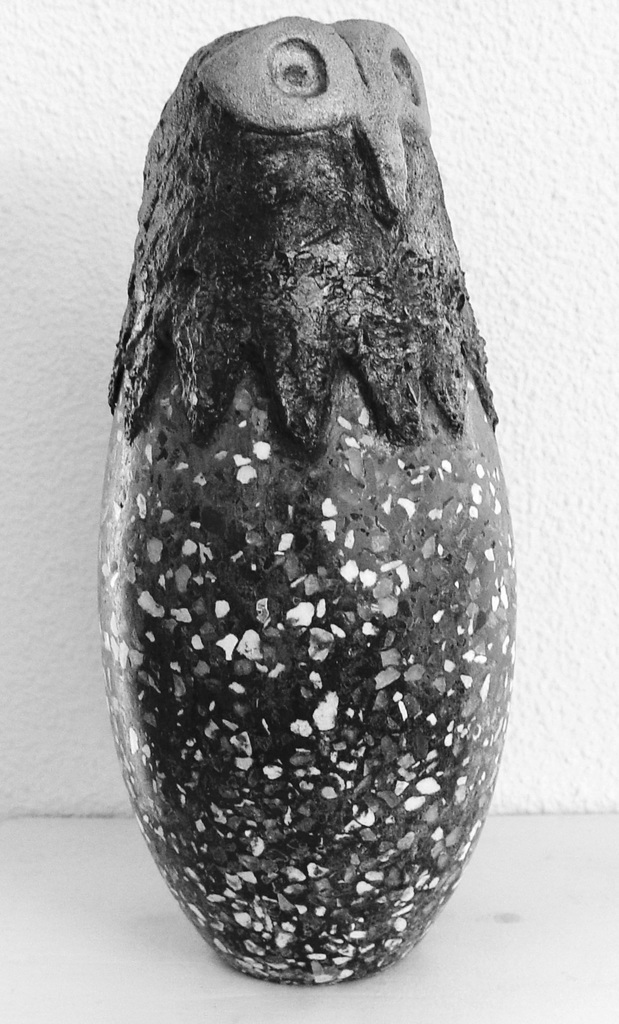 Granito uil, aluminium cement en grove mix van granito en glas
