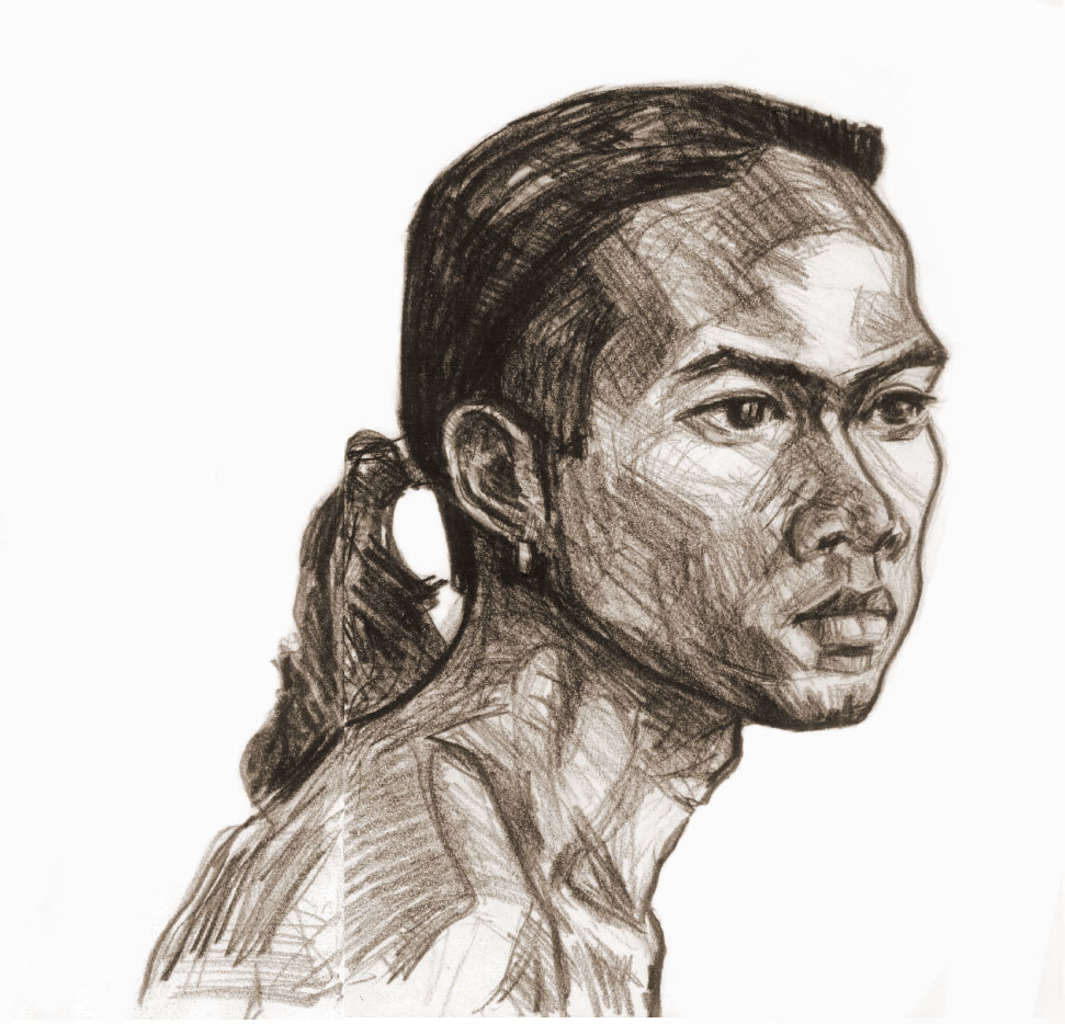 Portret Man Papier Potlood Bali