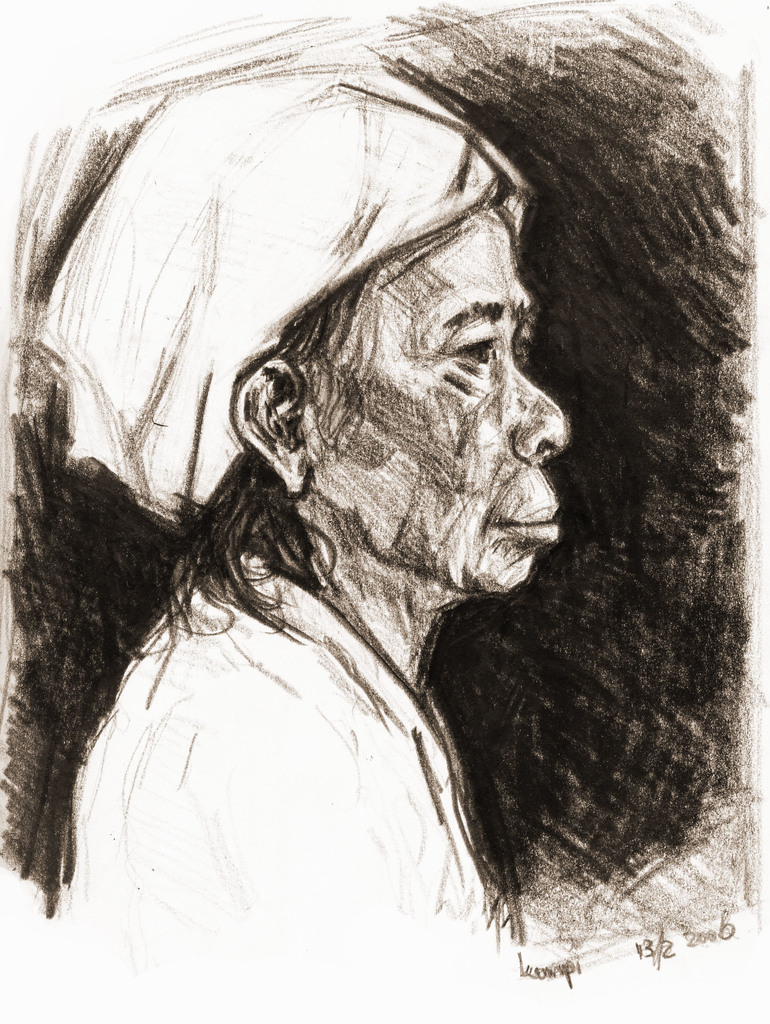Vrouw Portret Papier Potlood Bali