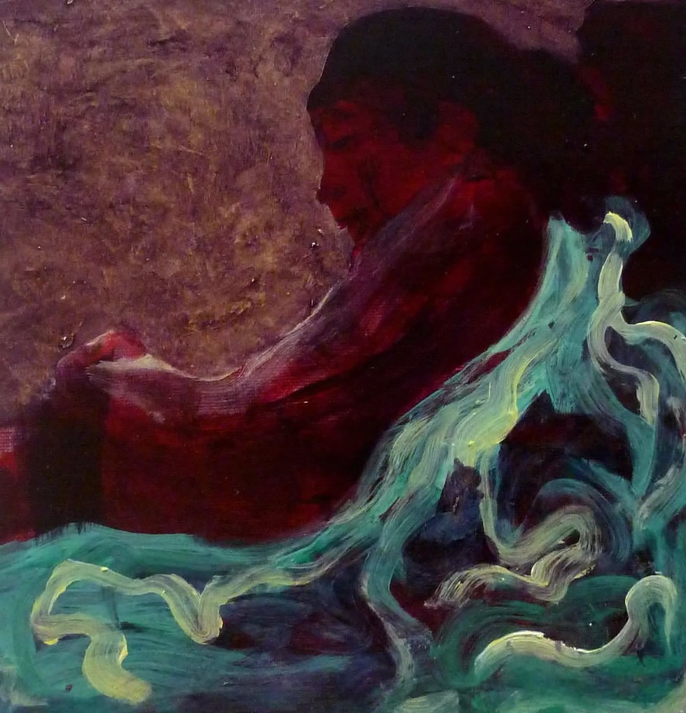 Rood Blauw Vrouw Man Olieverf Doek Androgyne