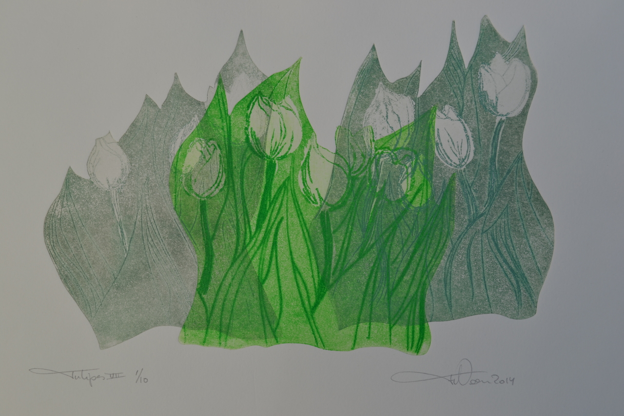 Tulpen VII - droge naald en aquatint - uitgezaagde zinkplaatjes - oplage 10