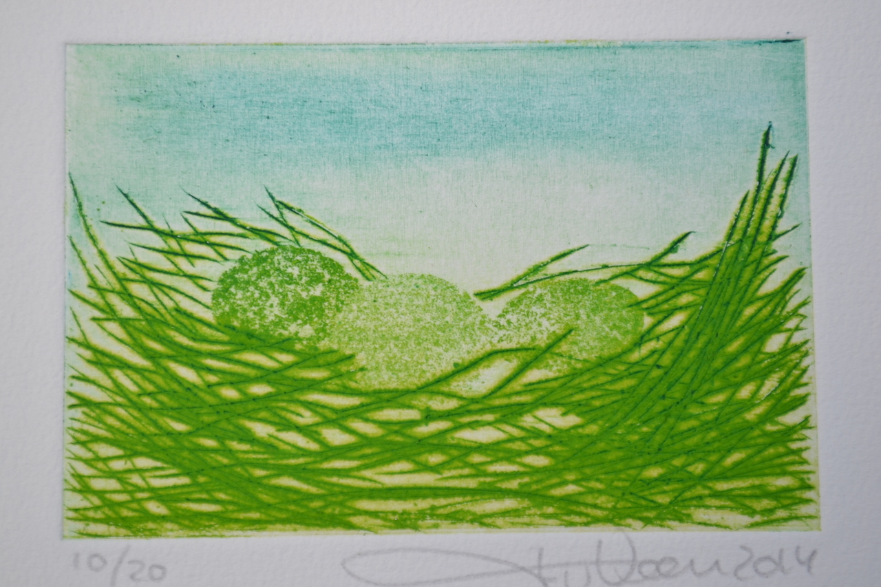 Vogelnestje IV - droge naald en aquatint - meerkleuren - oplage 20