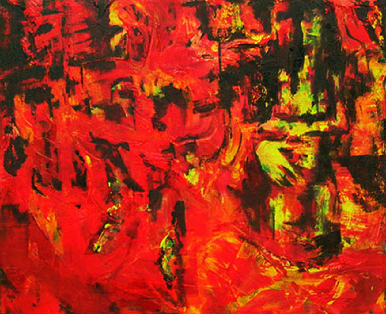 Vrouw Olieverf Apocalypse Rood Geel