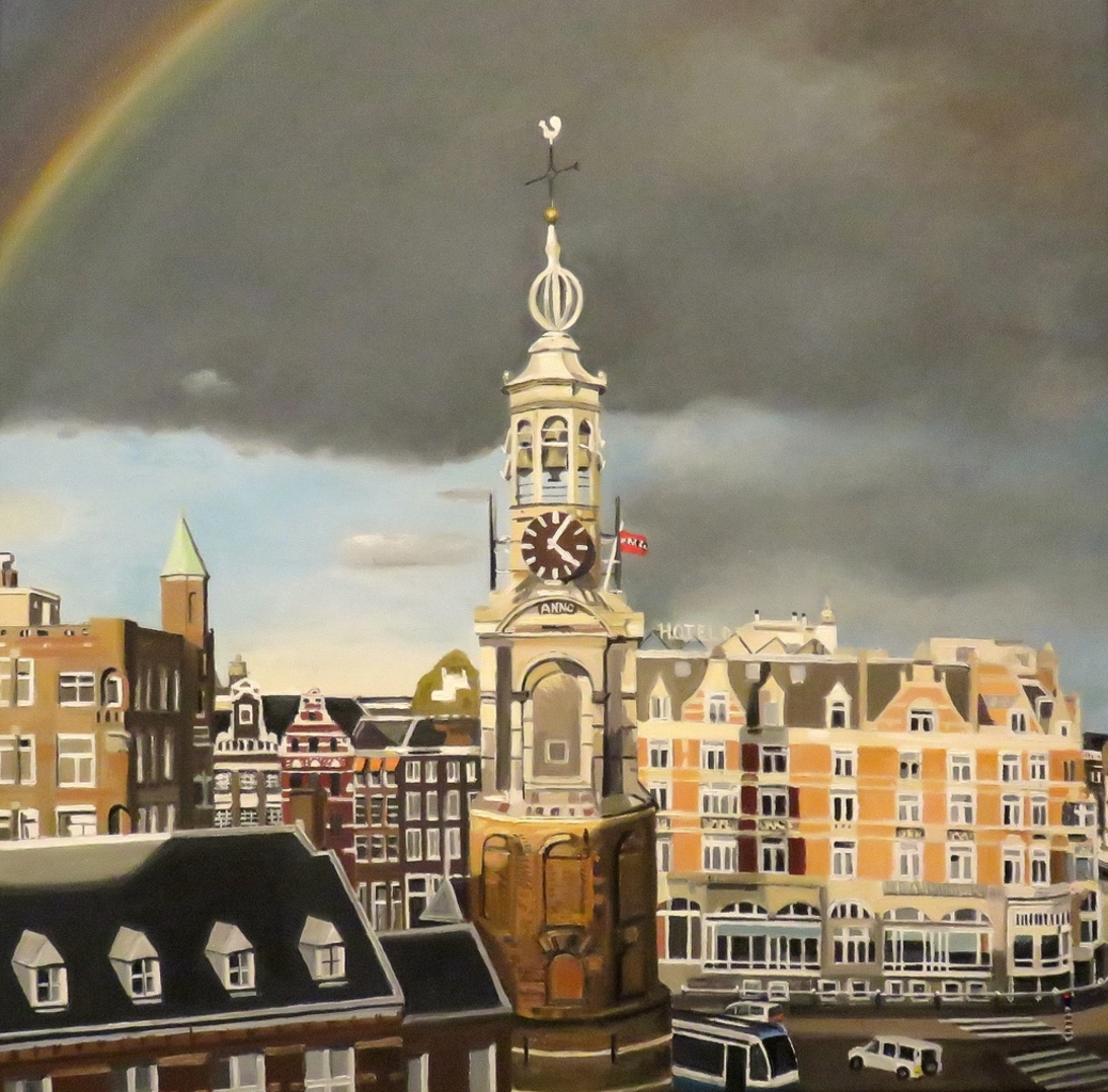 Amsterdam Stadsgezicht Munttoren Peter Boonstra Kunstschilder Modern Dutch Art Almere Magisch Realisme Romantisch Figurisme