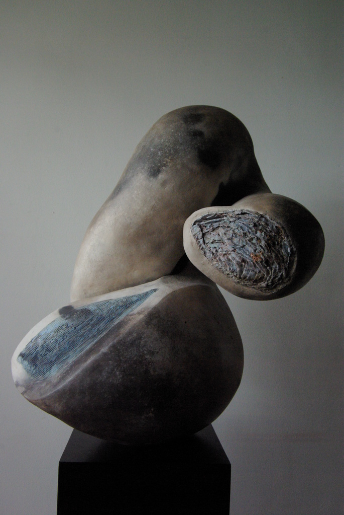 Mijn keramiek is rond, gebogen, zacht en geleidelijk verlopend met verrassende details van laagsgewijs opgebouwde onderdelen die juist speciale aandacht krijgen. Ik laat me uitdagen door het zogenaamde primitieve stoken; pitfire en naked raku.