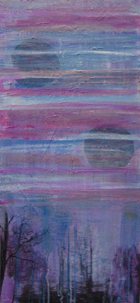 Maan Bomen Olieverf Transfer Roze Blauw Twee Eclips