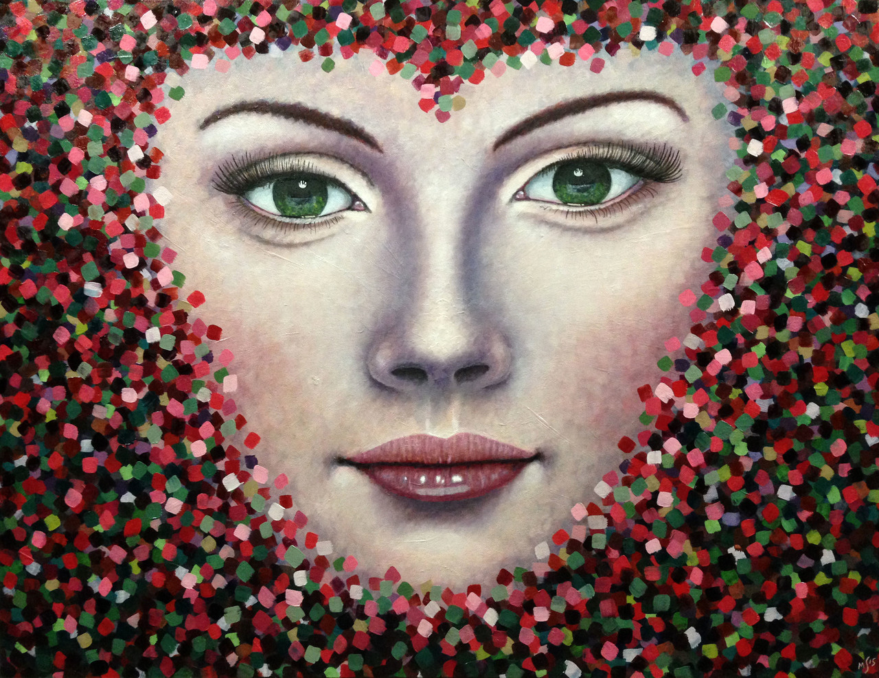 Portret Hart Gezicht Portrait Face Heart Koningin Queen Pointillisme Frontaal Hearts Pointillism Hartenkoningin
