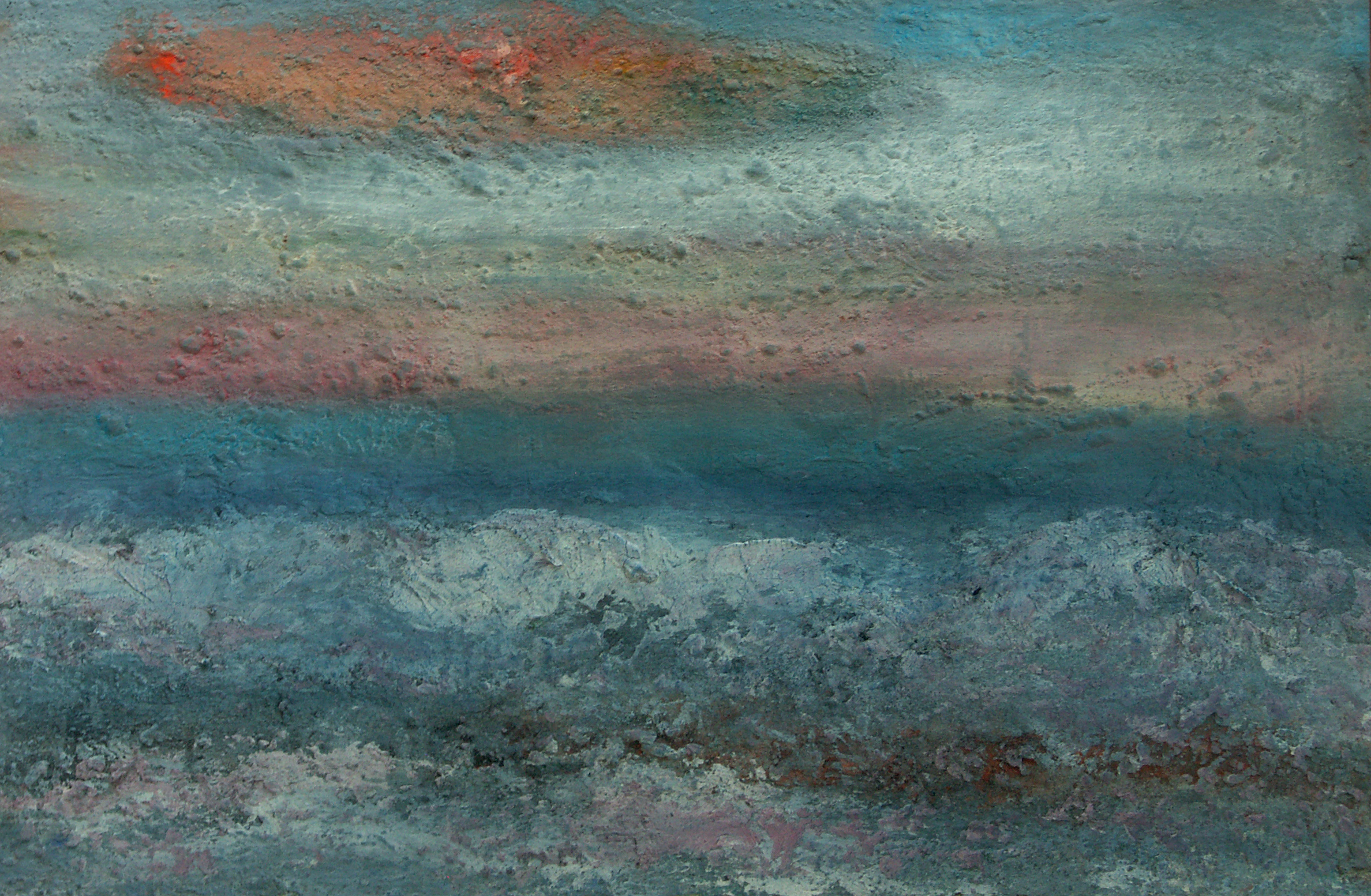Schilderij Zee Blauw Zonsondergang Roze Tempera Anneke Schie