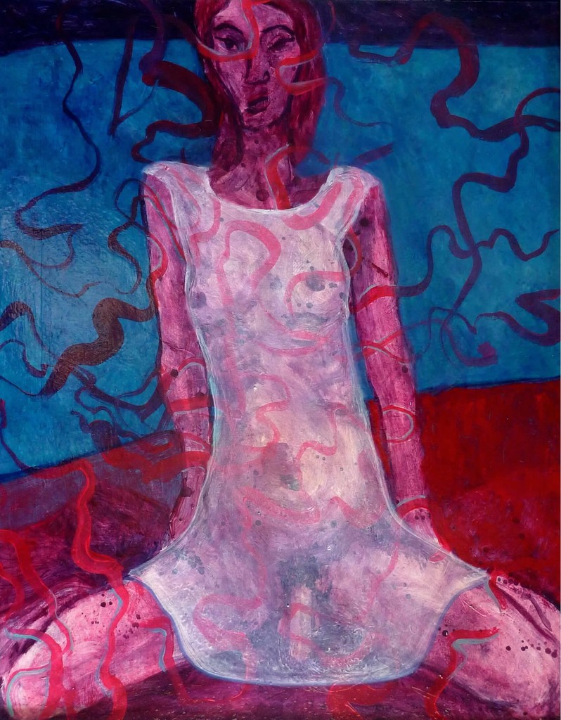 Ladyboy Roze Achtergrond Groen Blauw Rood Olieverf
