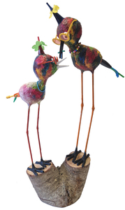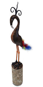 mijn naam is Fred Dessing en ik maak van rest-en afvalproducten én van papier-maché letterlijk heel vreemde vogels. puur uit hobby ben ik hier aan begonnen en heb inmiddels ruim 130 exemplaren vervaardigd en verkocht. ik sta regelmatig op kleine kunstmarkten, voornamelijk in de Randstad waar ik mijn vogels probeer te slijten. het zijn 3 dimensionale vogels, gemiddeld zo'n 70 cm hoog en alleen geschikt om binnenshuis te plaatsen, maar ik vervaardig nu ook exemplaren die bijvoorbeeld in de tuin geplaatst kunnen worden. hier ben ik mee gestopt omdat de combinatie papier-maché en de tegenwoordige natte omstandigheden buiten niet ideaal was