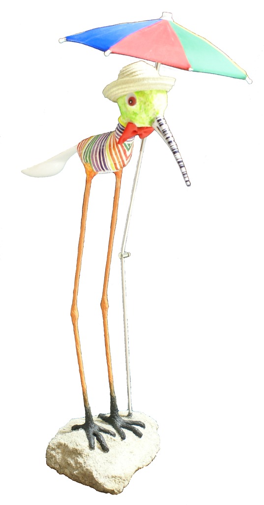 mijn naam is Fred Dessing en ik maak van rest-en afvalproducten én van papier-maché letterlijk heel vreemde vogels. puur uit hobby ben ik hier aan begonnen en heb inmiddels ruim 155 exemplaren vervaardigd en verkocht. ik sta regelmatig op kleine kunstmarkten, voornamelijk in de Randstad waar ik mijn vogels probeer te slijten. het zijn 3 dimensionale vogels, gemiddeld zo'n 70 cm hoog en alleen geschikt om binnenshuis te plaatsen, maar ik heb ook exemplaren gemaakt die bijvoorbeeld in de tuin geplaatst kunnen worden. Hier ben ik mee gestopt omdat de combinatie papier-maché en de tegenwoordige natte omstandigheden buiten niet ideaal was