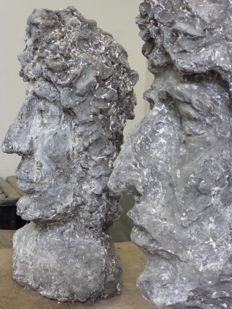 Tangarine is een duo bestaande uit twee broers die folk zingen. Eerst heb ik hen in klei geboetseerd. Daarna gelamineerd in aluminiumcement. De hieronder staande afmetingen zijn per beeld.