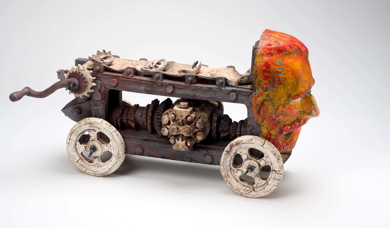 2015 is het jaar dat van Gogh 125 jaar geleden is gestorven. Het werk wat ik daarvoor heb gemaakt is een machine met aan de voorkant zijn hoofd. Achter zijn hoofd zit een bakje wat naar beneden gaat en een oor op de lopende band legt. Op deze band liggen nog meer oren, deze lopen naar de achterkant waar ze in een ander bakje vallen. Het geheel is weer een echte van der Zeeuw. Inclusief motortje,tandwielen enz. alles weer gemaakt van keramiek.