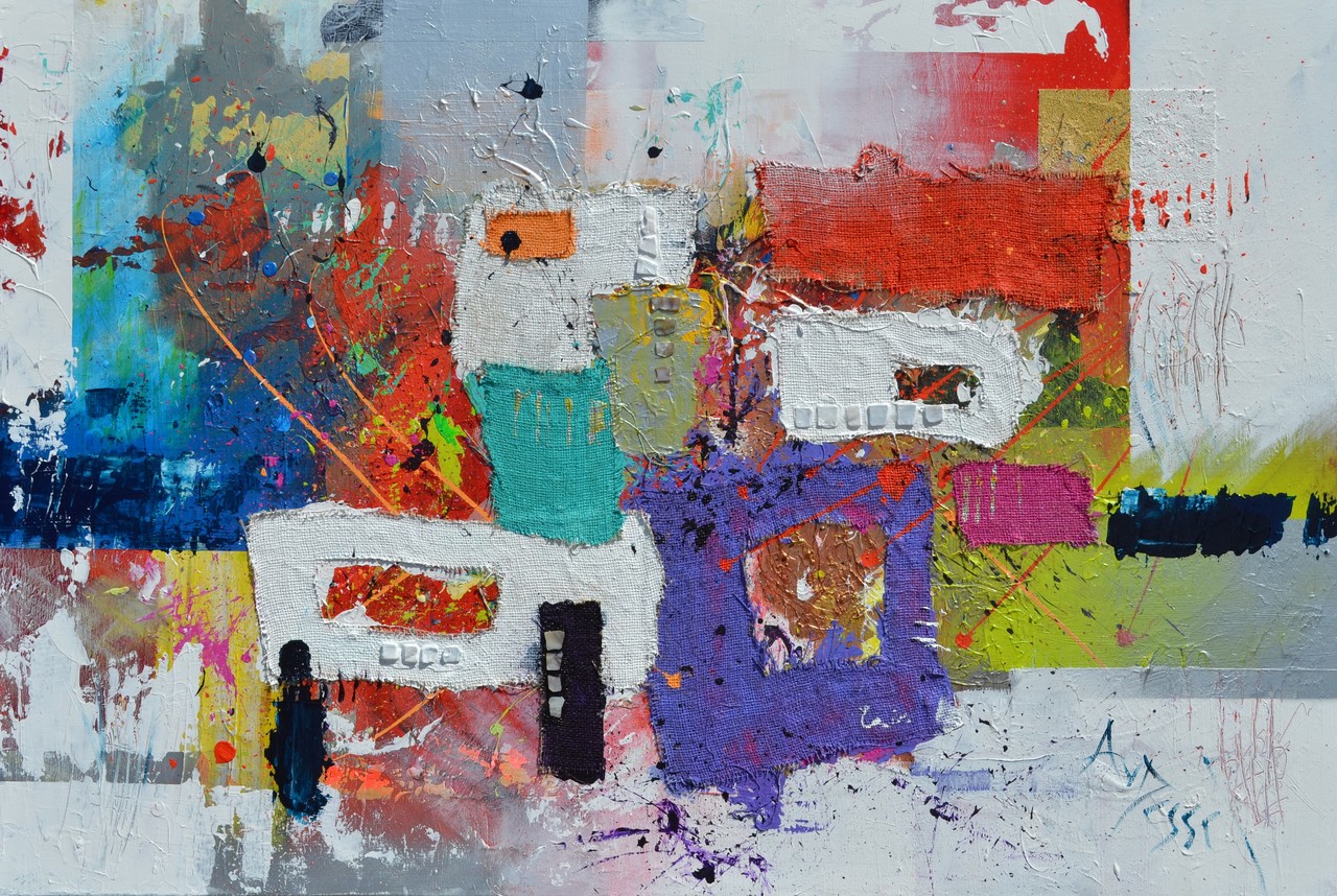 De meeste creaties van Tom zijn geen kant en klare fotogelijkende schilderijen maar met zijn abstract ogende werken nodigt hij iedereen uit om zelf herkenbare beelden te ontdekken.