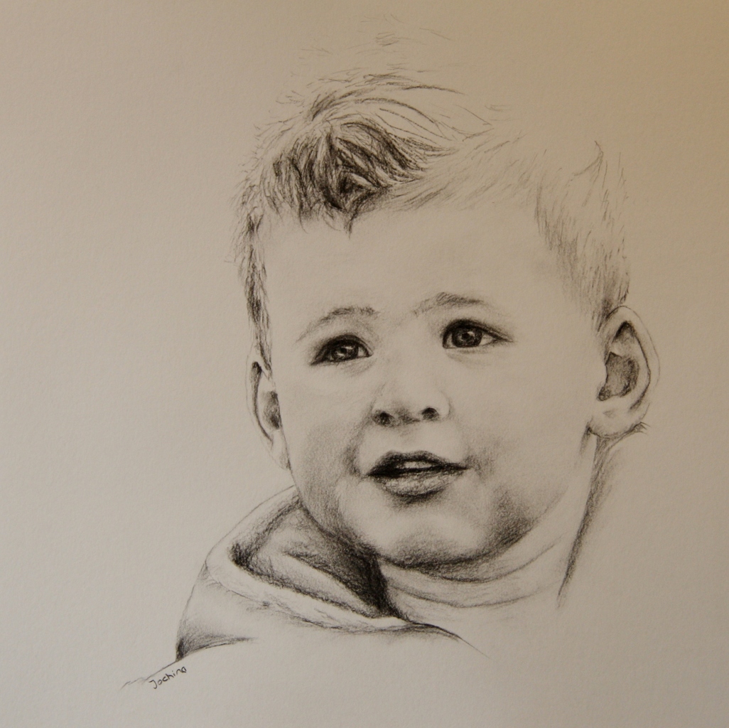 portret van een jongetje in houtskoolpotlood in opdracht.