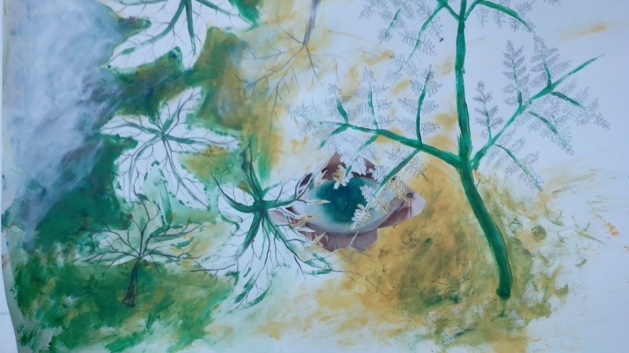 Ik teken in kleur en de kleur is als een teken... en soms wordt het getekende uit zijn illusoire wereld gehaald om een een ruimtelijk object te worden.