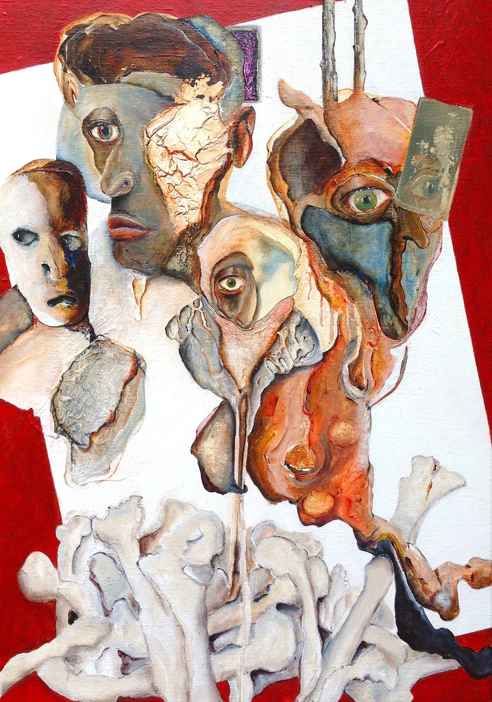 acryl, olieverf, krijt, gips en papier, afgegoten met epoxyhars