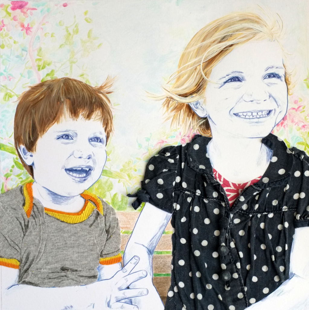 Kinderportret in opdracht Gemengde techniek op papier 51 x 51 cm