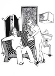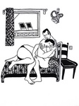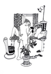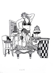Ellen werkt met pen en inkt en tekent intieme, huislijke taferelen, die bij nader beschouwing vaak surrealistisch van aard zijn en toch óh zo herkenbaar. Haar tekeningen ontstaan geheel op intuïtieve wijze meteen in inkt op het papier, zonder plan of schets vooraf.