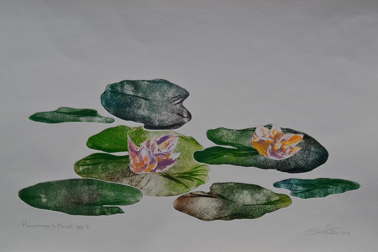 Hommage à Monet XII - droge naald en aquatint - uitgezaagde zinkplaatjes - meerkleuren - oplage 1