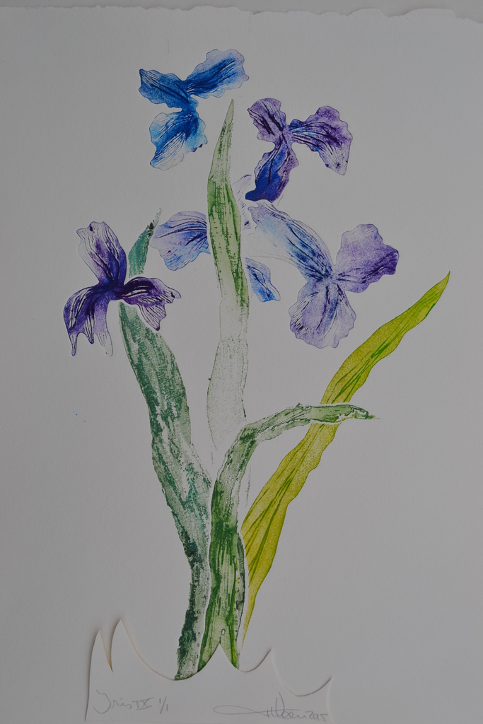 Iris IX - droge naald en aquatint - uitgezaagde zinkplaatjes - meerkleuren - oplage 1