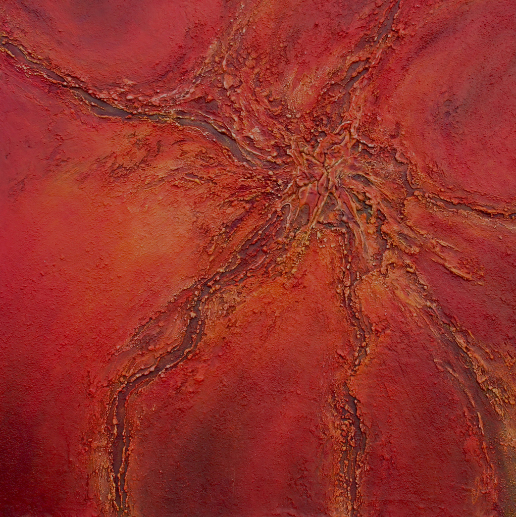 Vuur der aarde fantasie. Materie, zand, steentjes, acryl