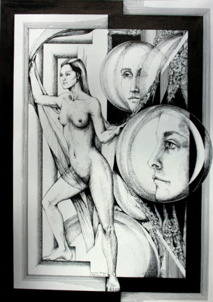 Ik ben vooral geboeid door de mens. Mijn werk is figuratief met een surrealistische inslag.Ik maak textielobjecten (in natuurzijde), olieverfschilderijen en pentekeningen