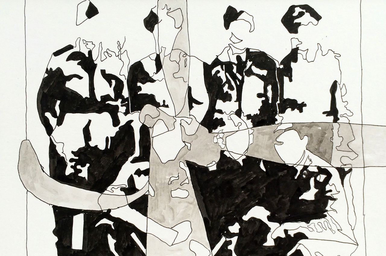 ontwerp voor ets, in passe-partout en mat zilver aluminium lijst