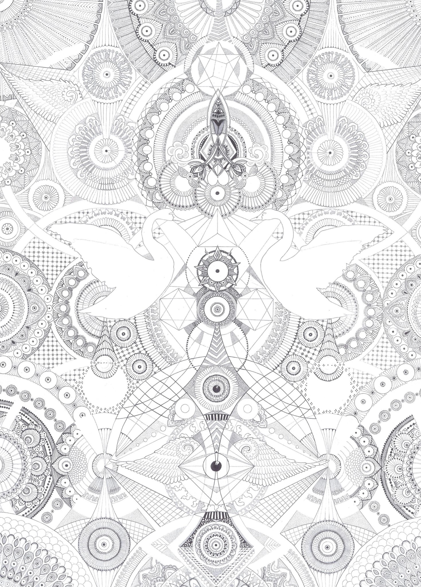 Zwaan Mandala Geometrisch Patronen Henna Pointilisme Psychedelisch Psychedelic Dotwork