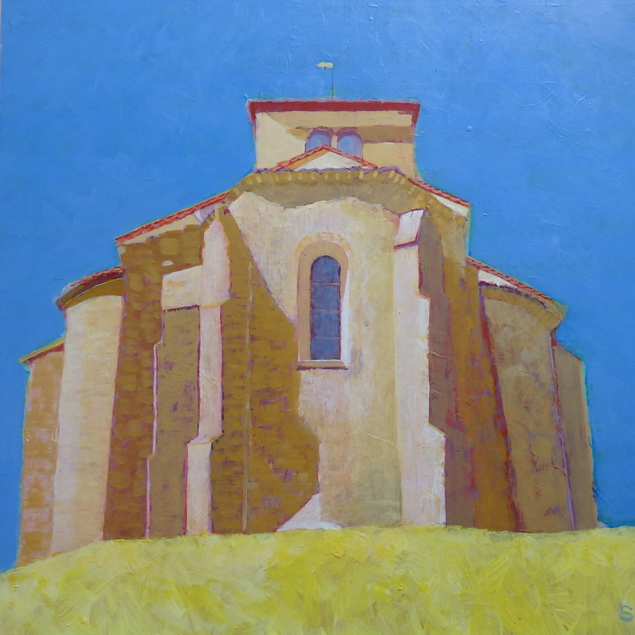 Mijn schilderijen zijn in acrylverf op doek of paneel, in een beperkt kleurenpalet. Ik heb de Rietveld Academie afgerond: binnenhuisarchitectuur. Schilderlessen heb ik gevolgd op de Gooische Academie.